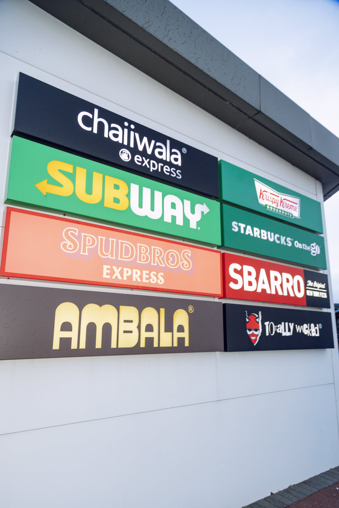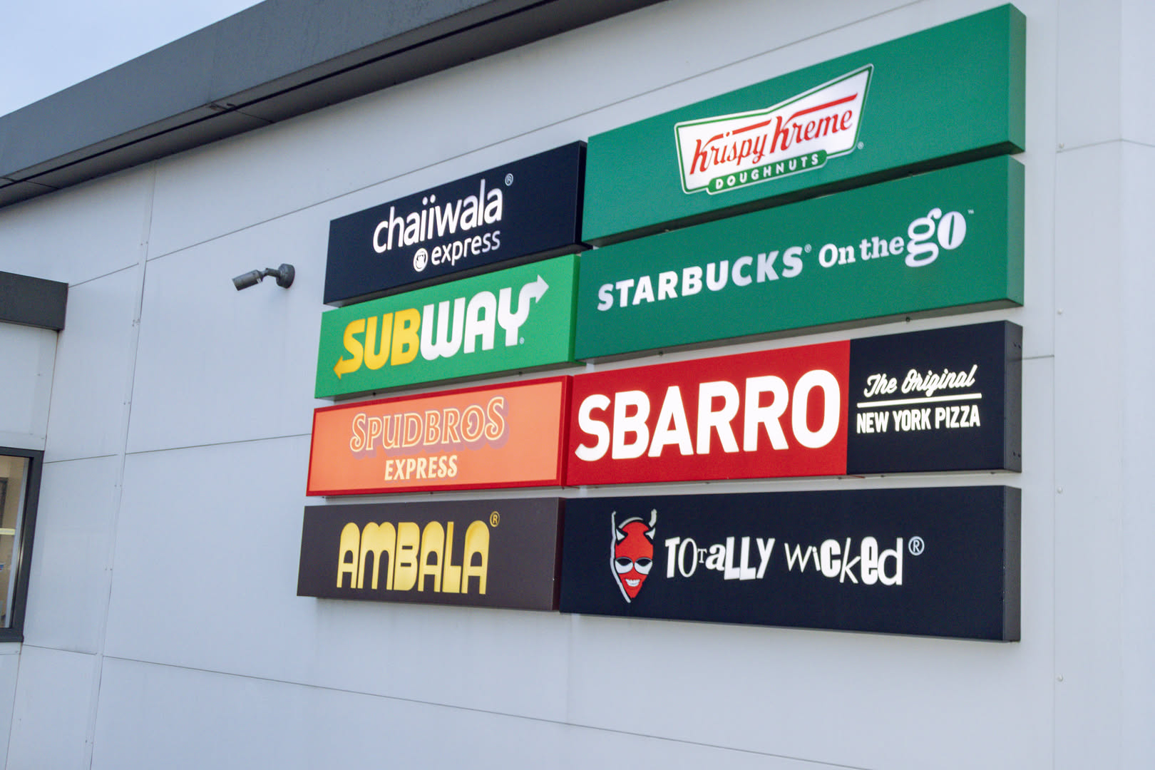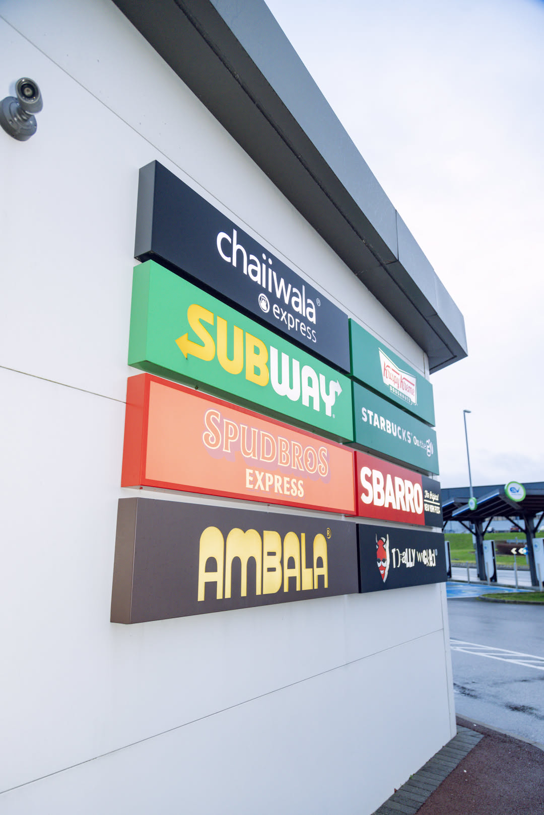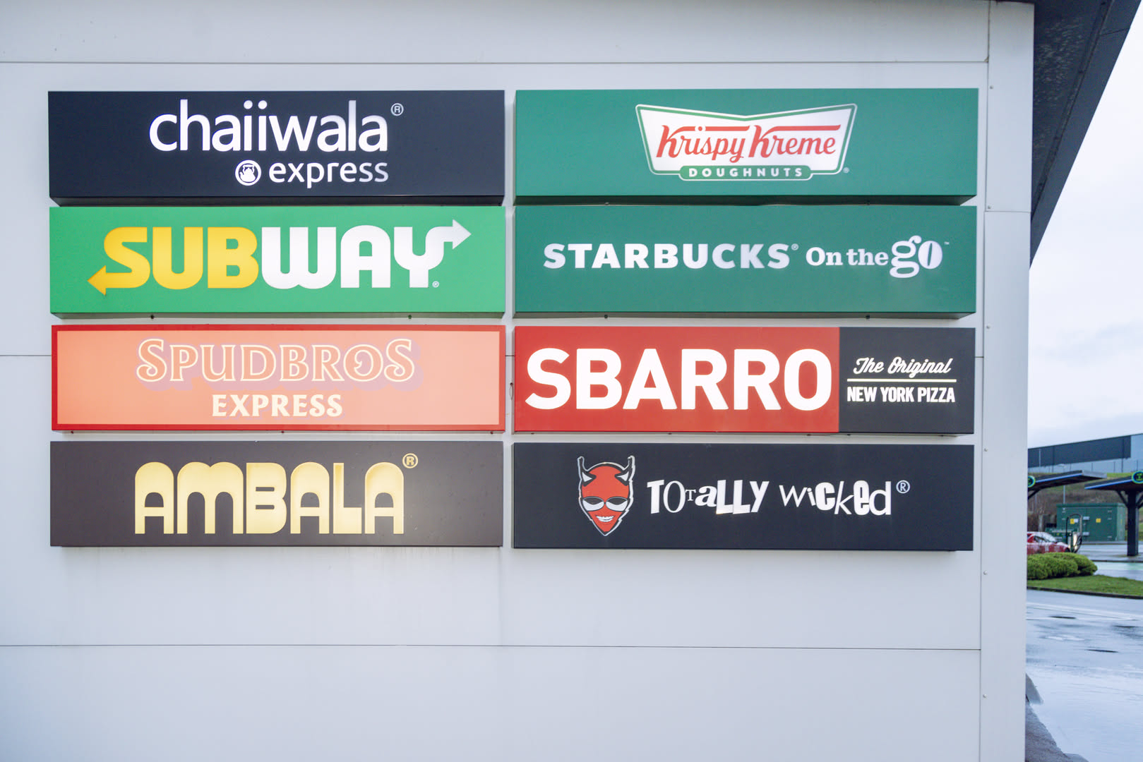 Choose your perfect pit stop with Starbucks for barista coffee, fresh bakes at Greggs, subs from Subway, New York–style slices at Sbarro, and vibrant treats from Chaiiwala.