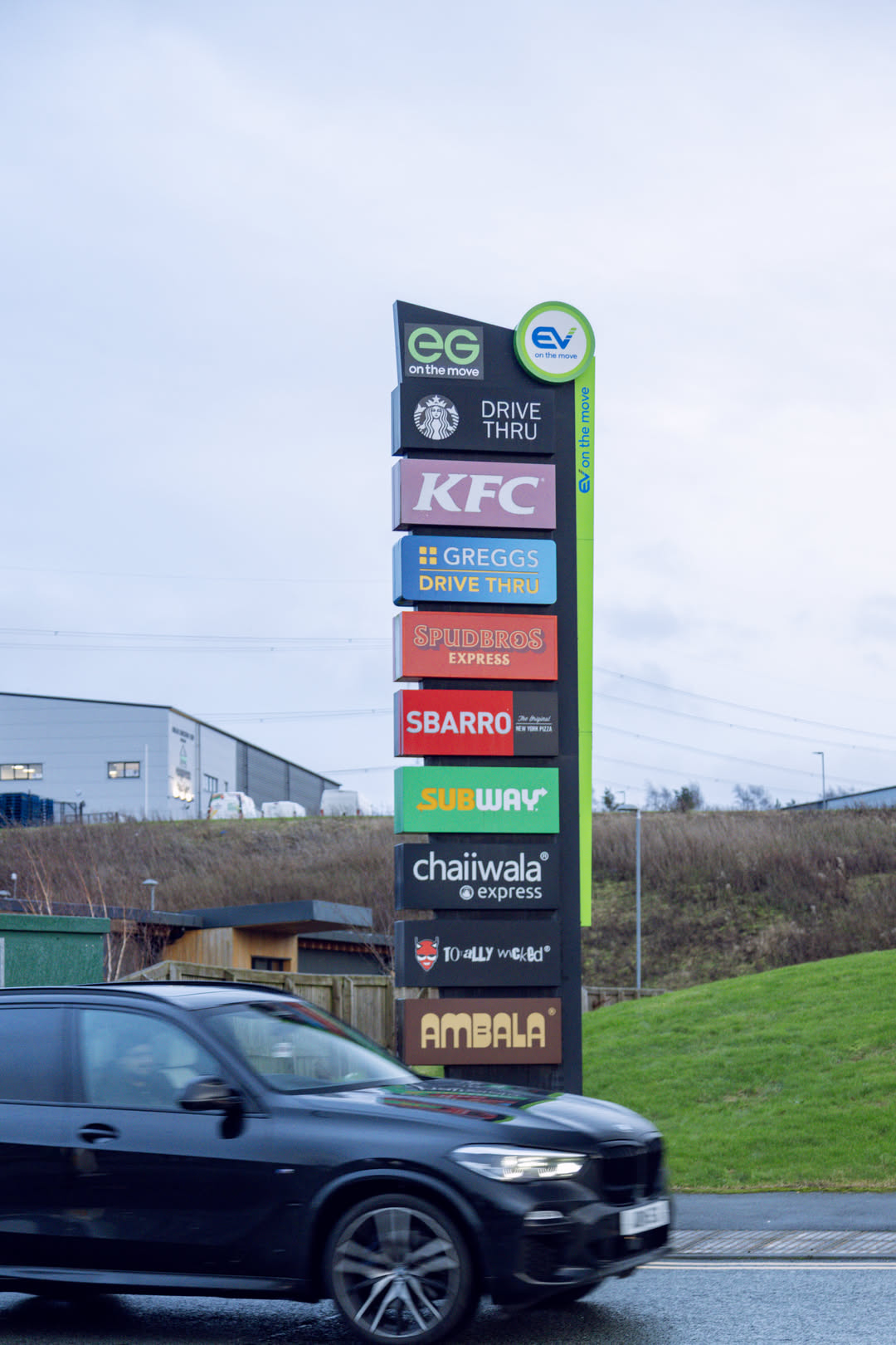 Swing in quickly from the motorway for BP fueling, everyday essentials at the on-site Spar, and convenient EV charging bays to top up while you take a break.